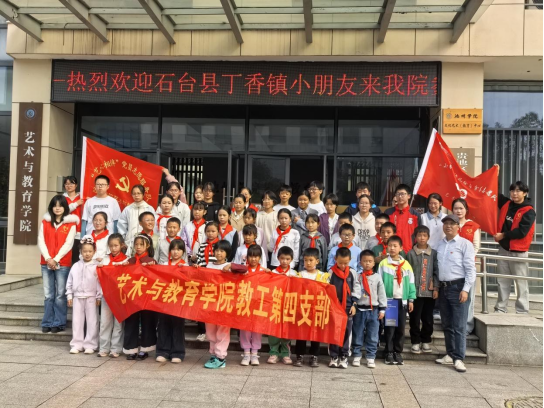 11月1日,艺术与教育学院师生党支部联合池州市民政局等单位开展“池守童安·美育心灵”美育及心理素质拓展主题党日活动,学前教育和应用心理学师生党员带领石台县丁香镇梓桐村、库山村40余名农村儿童、山区儿童走进学院美育教育中心,开启了一场集文化浸润、艺术感知、心理成长于一体的研学之旅。