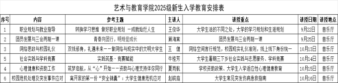 为帮助2025级新生快速适应大学生活、明确成长方向、筑牢发展根基,艺术与教育学院开展了以“多维赋能筑根基 新生扬帆启新程”为主题的新生入学教育系列活动,通过系统化、专业化的教育实践,为新生扣好大学生涯的“第一粒扣子”。