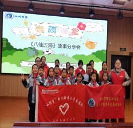 志愿者们在活动中以经典神话传说为载体,深入挖掘故事背后蕴含的民间文学精髓与传统文化内核,为三年级两个班的同学讲述了《八仙过海》的故事。通过情景再现、游戏互动问答等方式,解读故事中“勇敢探索、不畏艰难”“扬长避短、互助协作”的精神内核,让小学生在趣味体验中感受经典的文化底蕴与精神力量。本次活动得到了在场师生的一致认可。最后刘柳燕结合自己的教学经验,为在场同学提出了针对性指导意见。