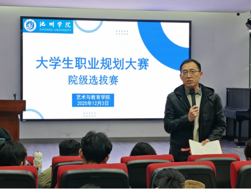 12月3日下午,艺术与教育学院在美术楼一楼会议室顺利举办全国第三届大学生职业规划大赛院级选拔赛。院党委副书记李俊明出席大赛并发表讲话,全体专职辅导员担任评委,来自2025届的近百名新生到场观摩学习。