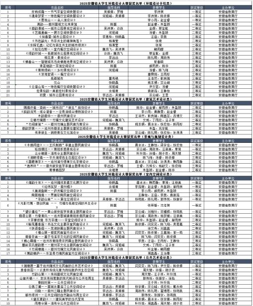 近日,2025年安徽省大学生环境设计大赛决赛结果正式揭晓,学院环境设计专业学子凭借扎实的专业功底、创新的设计思维和出色的作品呈现,共斩获奖项62项。其中,一等奖17项,二等奖19项,三等奖26项。
