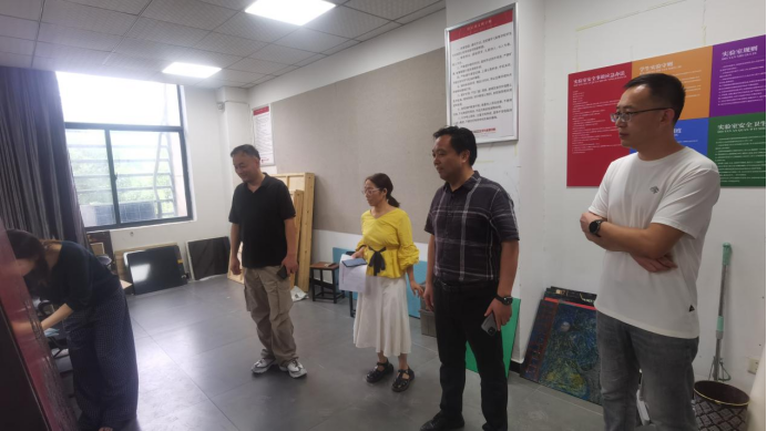 国庆节小长假前夕,为全面排查实训室安全隐患,压实安全管理责任,9月30日,学院党委副书记李俊明和副院长余维君、路广宏带队,实训中心主任及相关工作人员组成检查组,分别对美术楼的陈列馆、展厅以及陶艺工作室、漆画工作室,以及音乐楼的音乐厅、学生琴房以及古筝实训室、学前教育仿真实训室、电钢琴实训室等相关实训室进行了全面检查。